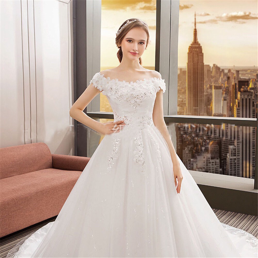 Putih gaun pengantin simple sweet large size lace korean wedding dress long .
